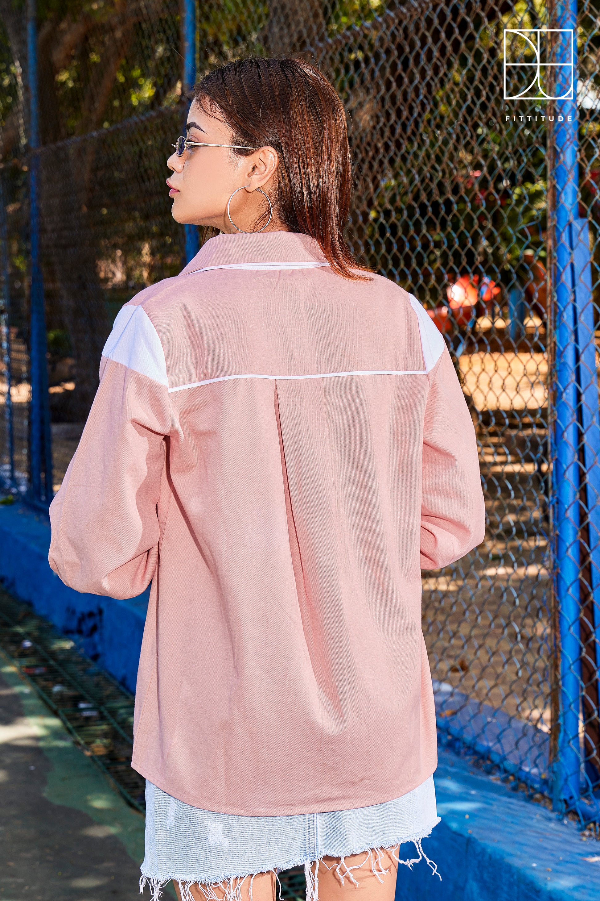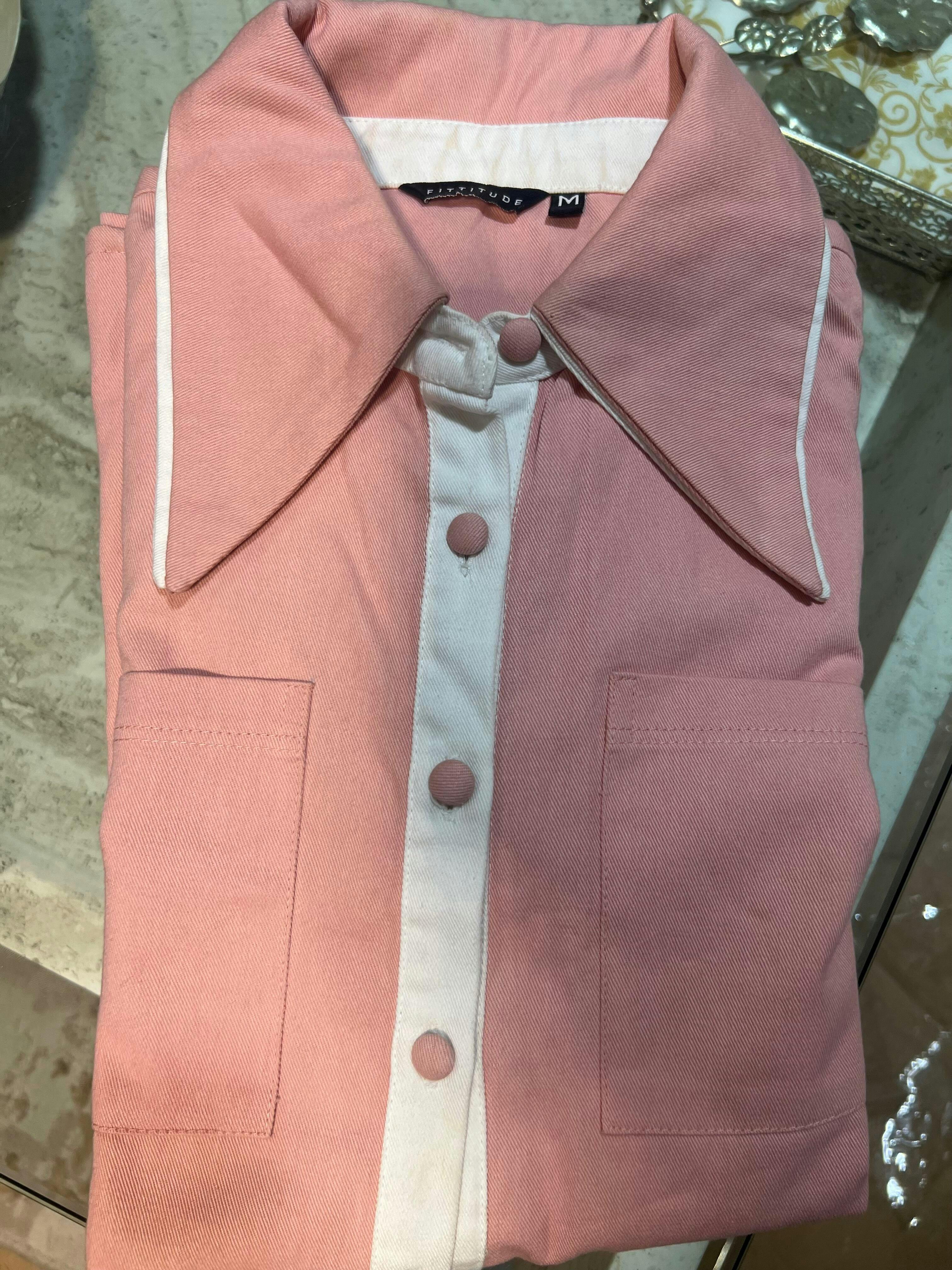 Upgrade your wardrobe with this trendy colour-block shirt. Designed in soft pastel pink with contrasting white accents, this shirt features a classic collar, button-down front, and long sleeves with buttoned cuffs for a polished look. The relaxed fit and lightweight fabric ensure comfort and versatility, making it perfect for layering over a crop top or pairing with your favourite denim. Ideal for casual outings or a chic street-style ensemble, this shirt is a must-have addition to your fashion collection.