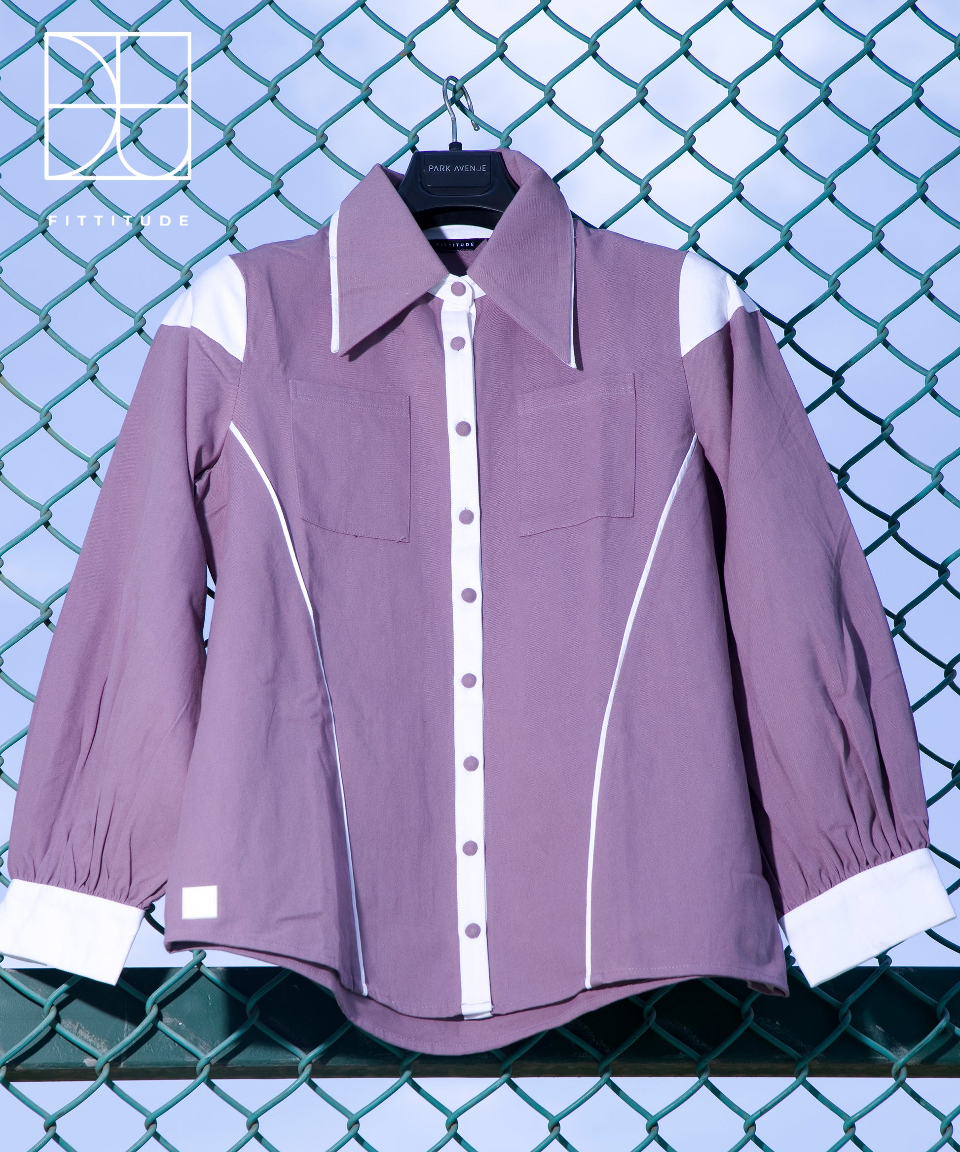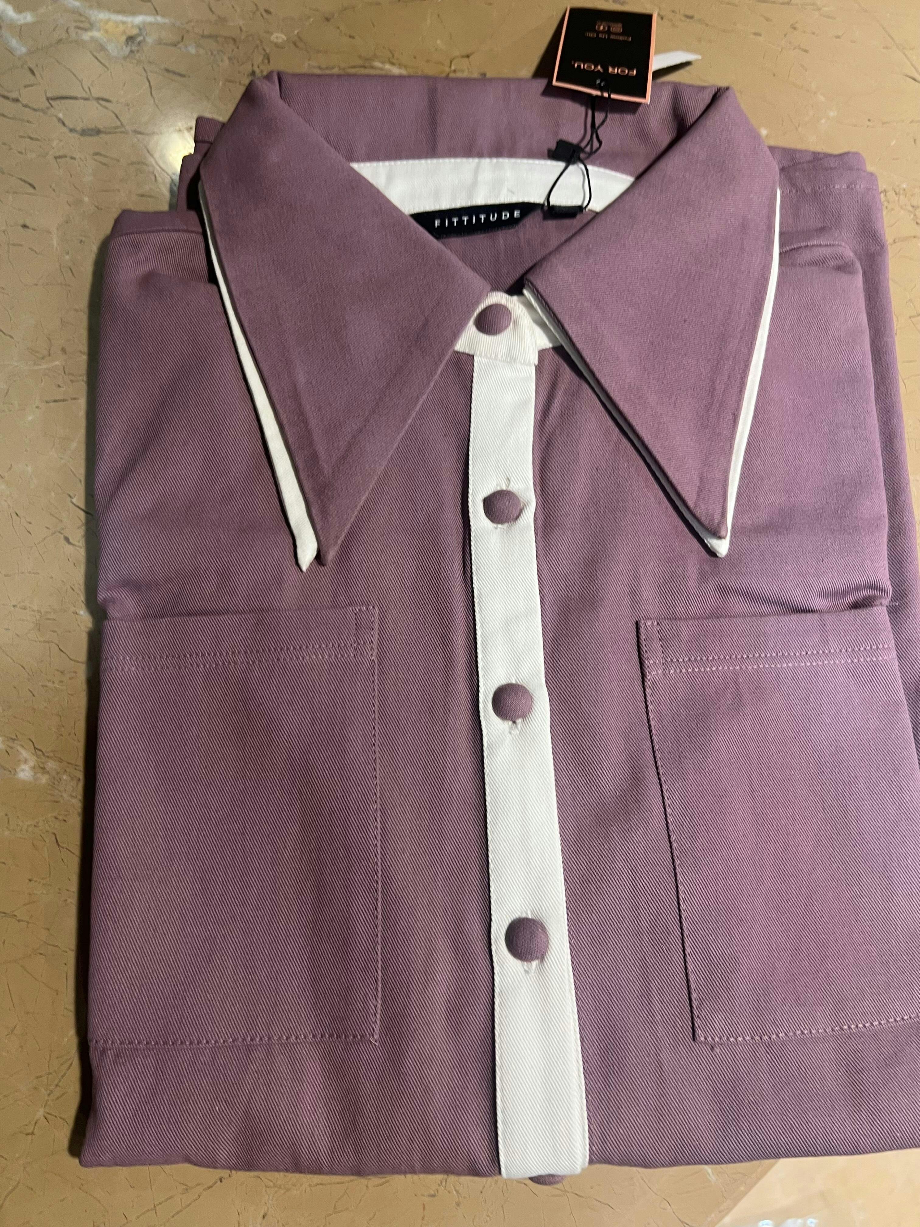 Elevate your wardrobe with our chic mauve button-down shirt, designed for the modern fashionista. This stylish shirt features a unique color-block design with contrasting white piping that highlights its tailored silhouette. Crafted from high-quality, breathable fabric, it ensures all-day comfort whether you're at the office or out for a casual day. The sharp collar and functional front pockets add a touch of sophistication.