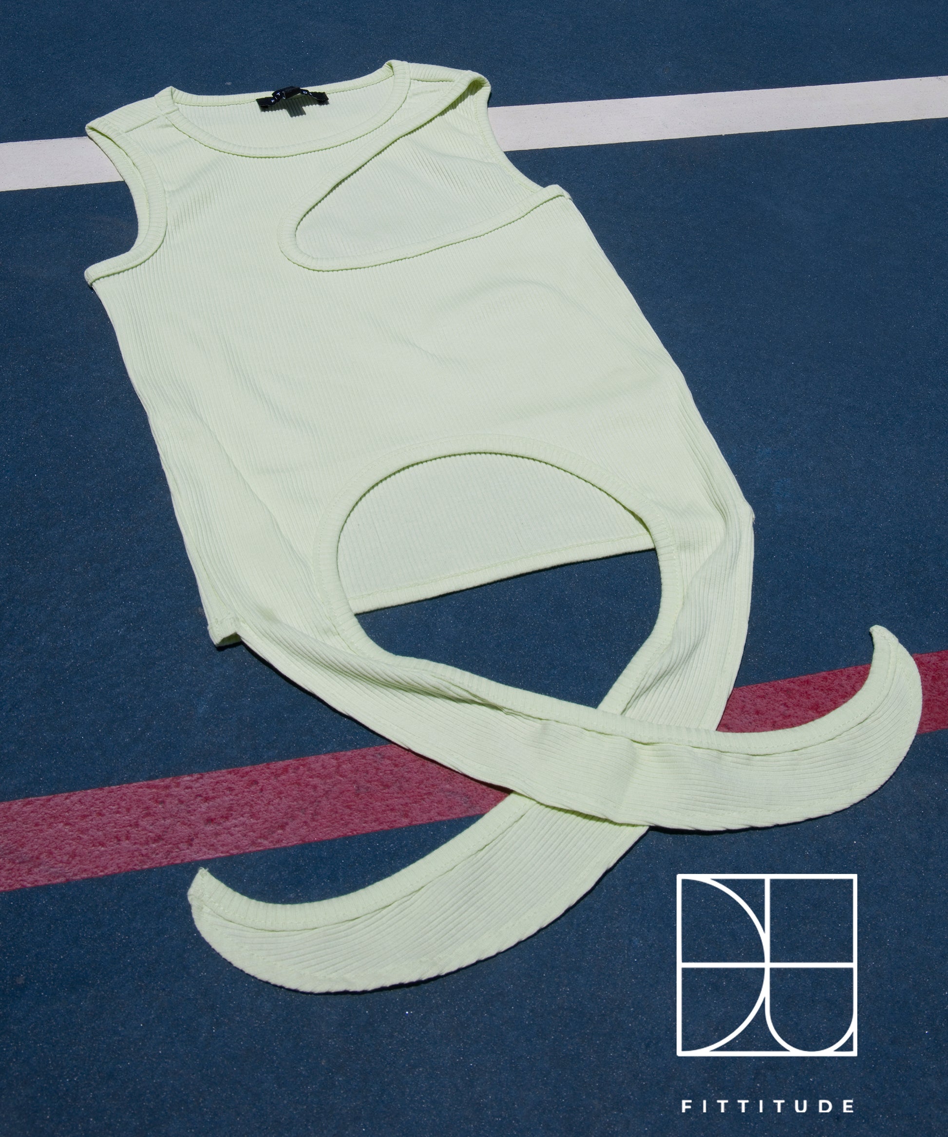Make a bold statement with this trendy lime green crop top. Featuring an asymmetrical design with eye-catching cut-outs and a stylish tie-front detail, this top is perfect for showcasing your unique fashion sense. The ribbed fabric offers a snug, comfortable fit that accentuates your figure, while the sleeveless design keeps you cool and chic. Ideal for pairing with high-waisted jeans, skirts, or shorts.