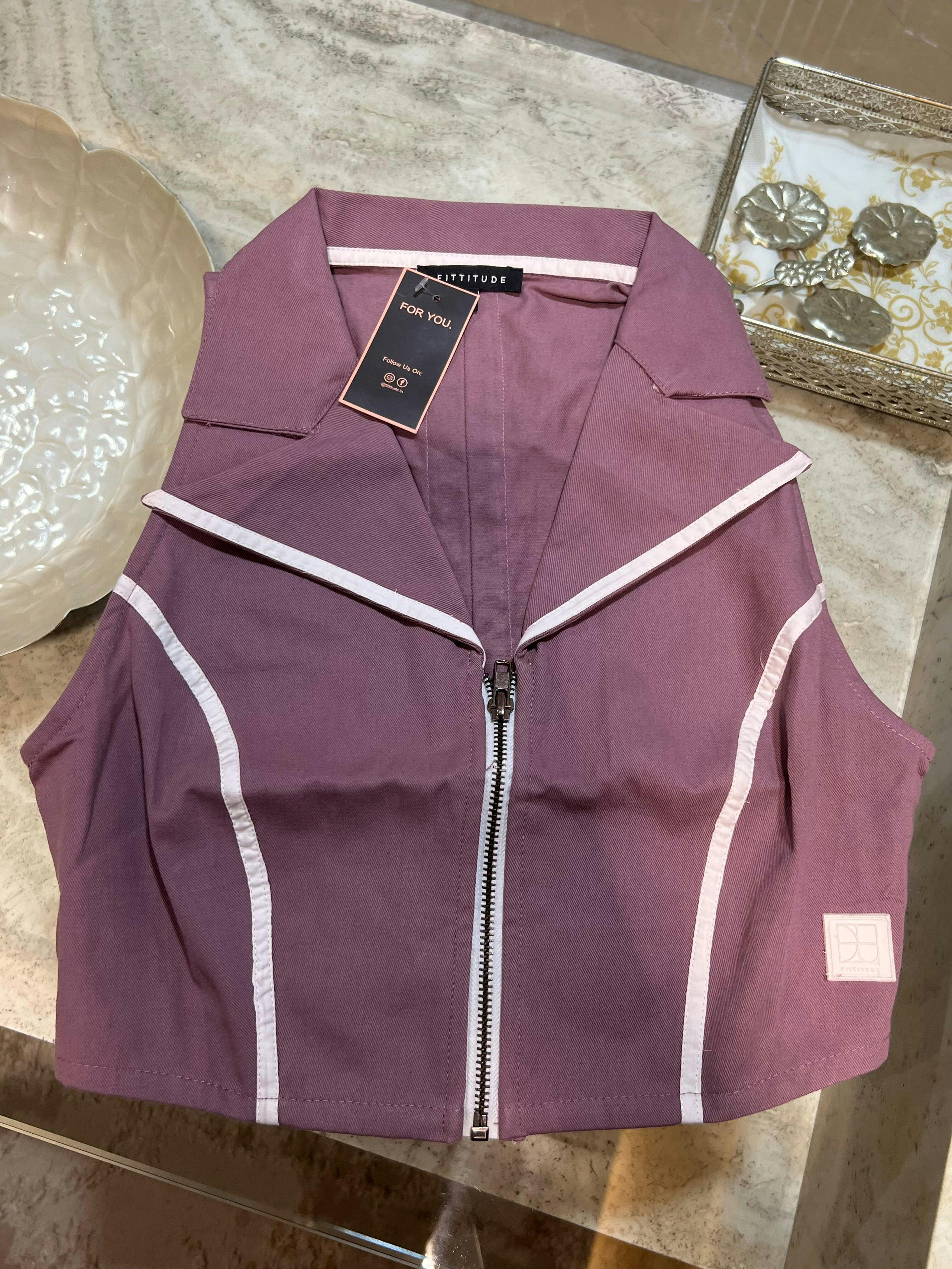Zip It Up Collared Crop Top (mauve)
